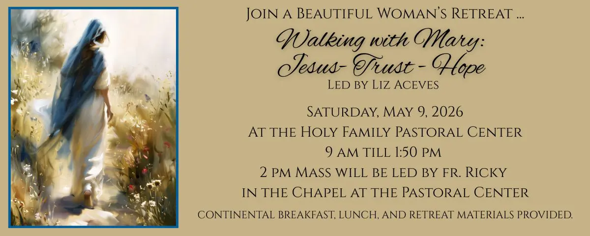 Join Liz Aceves as she leads a beautiful Women’s Retreat: Walking with Mary: Jesus – Trust – Hope.